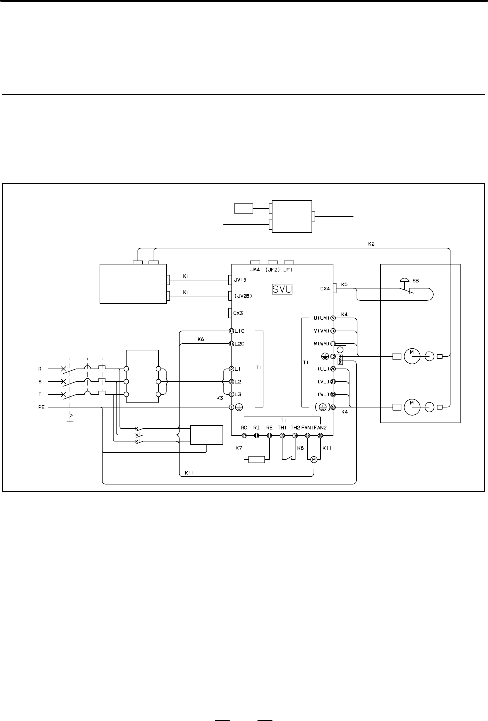 • Page 93B–65192EN/02 9. CONNECTION 9.3.3 Detailed Connection (1) Power supply voltage is 200, 220, 230VAC and the system conform of Cable K3 with the European standard. TB1 SVU SVUC L1 Power supply R (L1) 200VAC AC L2 220VAC S Breaker line (L2) 230VAC filter L3 T (L3) 50/60Hz G ( ) (2) Power supply voltage