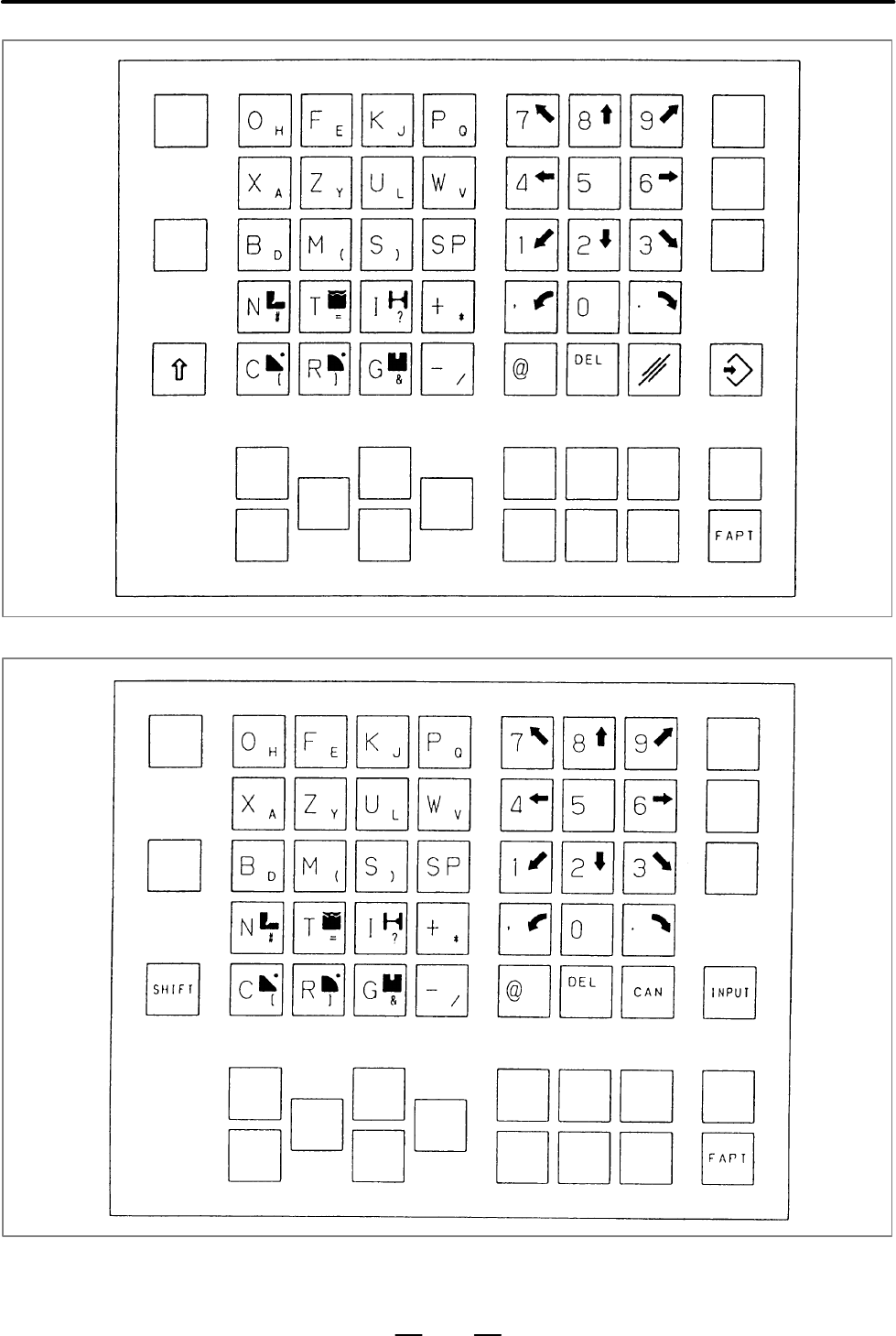 • Page 422. KEYS EFFECTIVE IN FAPT MODE EXPLANATION FOR CRT/MDI PANEL B–63304EN/02 MDI panel for 16i–TA CAP II or Symbol CAPi T (separate type MDI unit: text type) MDI panel for 16i–TA CAP II or Symbol CAPi T (separate type MDI unit: symbol type) 22