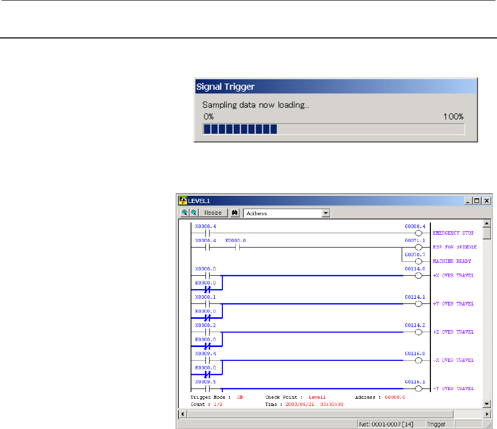 Page 5524. Check the setting items. Click the button. Fig.7.6(b) Click button. 5. [Transfer monitor] screen appears, and checked data is store into PMC. Fig.7.6(c) TITLE FANUC OPEN CNC LADDER EDITING PACKAGE (Windows) SUPPLEMENTARY OPERATOR’S MANUAL DRAW.NO. CUST. 01 05/01/14 First issue B