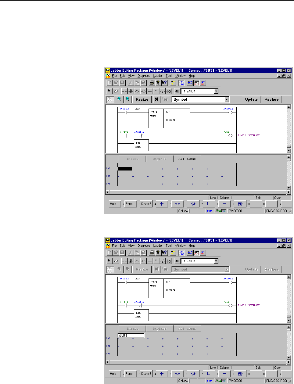 Page 603.CREATING AND EDITING SEQUENCE PROGRAMS B-63484EN/05 NOTE 1 If a ladder program to be edited online does not match one in the PMC, it is impossible to change the ladder mode to edit. Before trying to match the ladder to be edited to that in the PMC, store or load the ladder program to be edited. 2