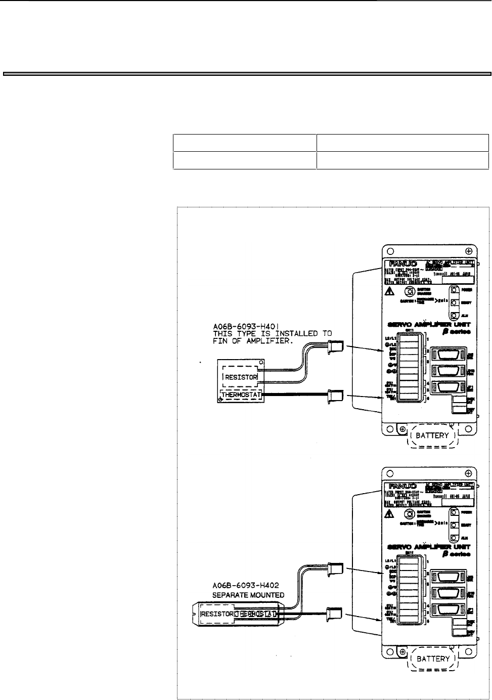 • Page 373. START-UP PROCEDURE START-UP PROCEDURE B-65235EN/02 3.3 CONNECTING THE SEPARATE REGENERATIVE DISCHARGE UNIT (1) Type A06B-6093-H401 Natural ventilation (30Ω /20W) A06B-6093-H402 Natural ventilation (30Ω /100W) (2) Connection - 36 -