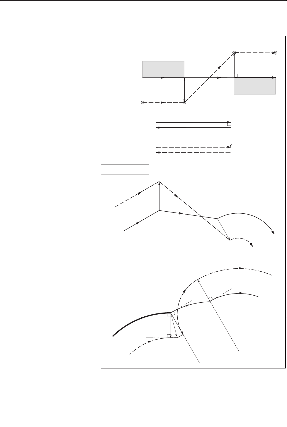 • Page 555. FEED FUNCTIONS PROGRAMMING B–63124EN/01 D Tool path in a cutting If the direction of movement changes between specified blocks during feed cutting feed, a rounded–corner path may result (Fig. 5.1 (b)). Y Programmed path Actual tool path 0 X Fig. 5.1 (b) Example of Tool Path between Two Blocks In