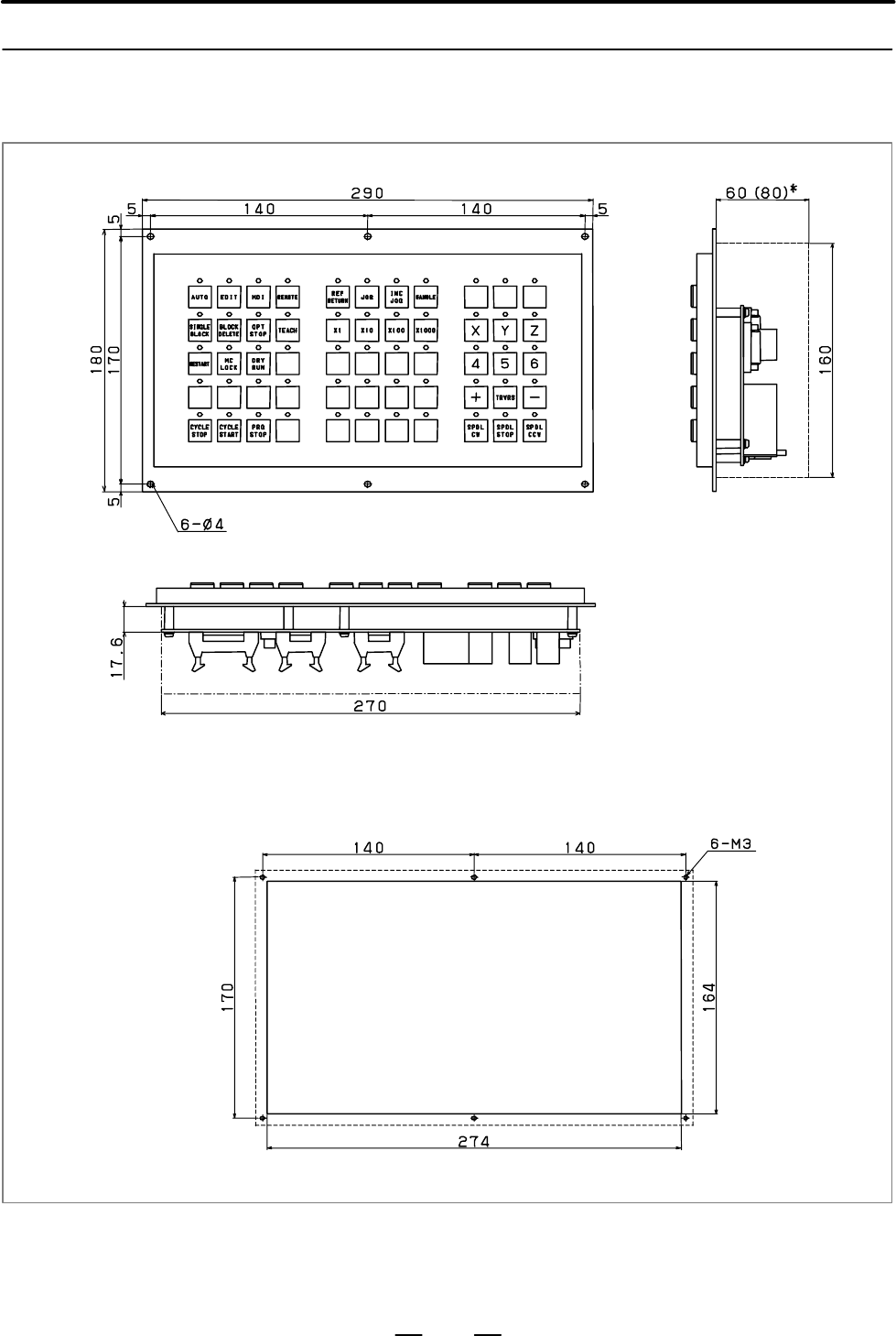• Page 517B–63523EN/03 Protective Blank panel An outline drawing of the blank panel is given in Fig. U38. grounding stud (M4) The back of the metal plate is masked, 8 mm wide along the outside edge, to prevent painting. 501 Up Fig. U36 61–key MDI unit (vertical type) Connector panel Weight: 2.0kg A. EXTERNAL