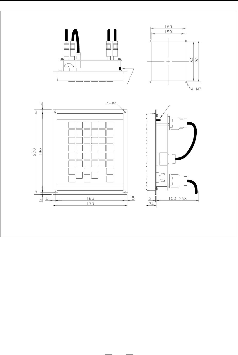 • Page 512A. EXTERNAL DIMENSIONS OF EACH UNIT B–63523EN/03 Painting shall be masked 8 mm from the edges of the panel sheet metal on the rear surface. The following is the panel cut layout drawing of this punch panel. 115 100 20 2–M3 Fig. U31 Punch Panel (Narrow Type) Specification No.: A02B–0120–C191 (cable l