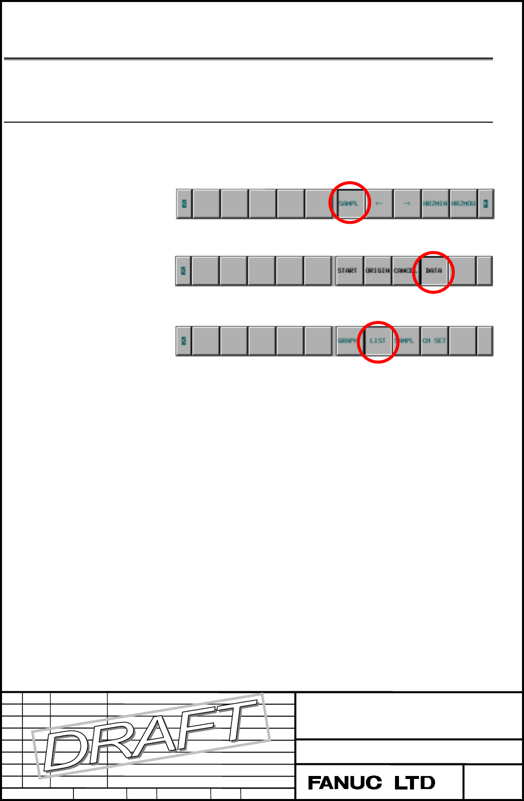 • Page 433.2.1.2 Composition of a picture Screen (softkey type : 12) Operation method Cursor movement : “↑" "↓" "←" "→" … It moves each direction. Title FANUC Series 16i/18i/21i-TB/MB SERVO GUIDE Mate Specification Drawing No. A-79087EN Page Ed. Date Design Description Date 2003.03.07 Desig. Kageyama Apprv.