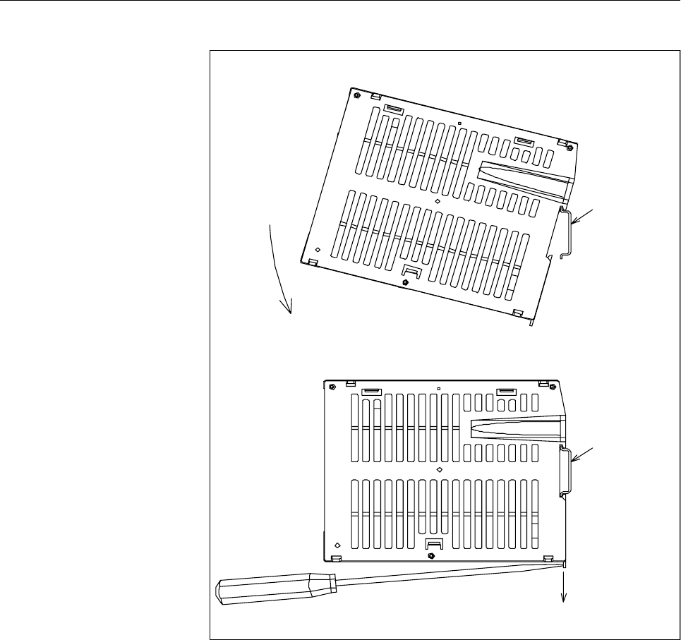 • Page 734.INSTALLATION GFKE-0218-EN/02 Attachment to a DIN rail Attachment DIN rail Detachment DIN rail Attachment 1. Hook the unit over the top of the DIN rail. 2. Press the unit down until it snaps into place. Detachment 1. Pull down the lock section with a standard screwdriver. 2. Pull the lower part of