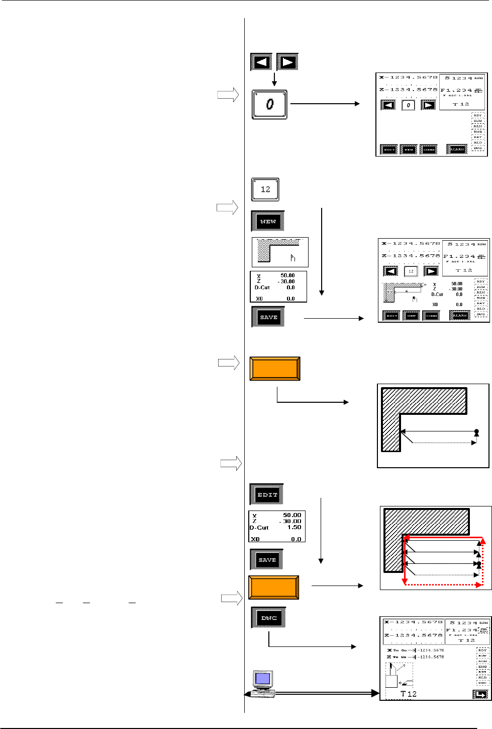 value (D-Cut=0) and pressing START button on