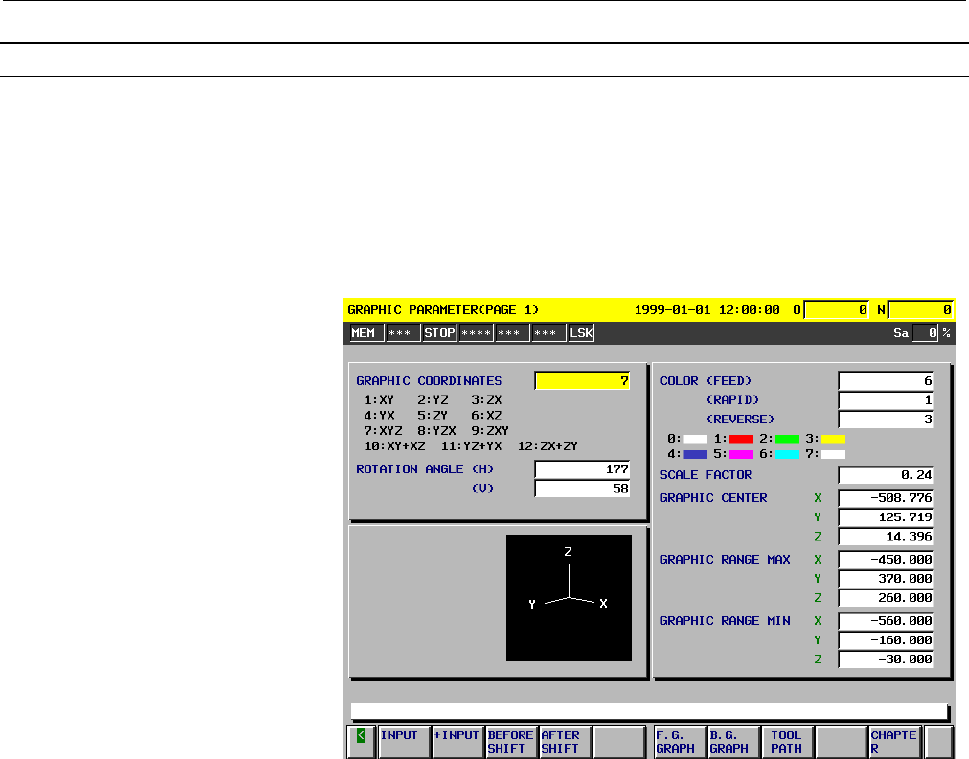 On page 1 of the graphic parameter screen, set the graphic coordinate