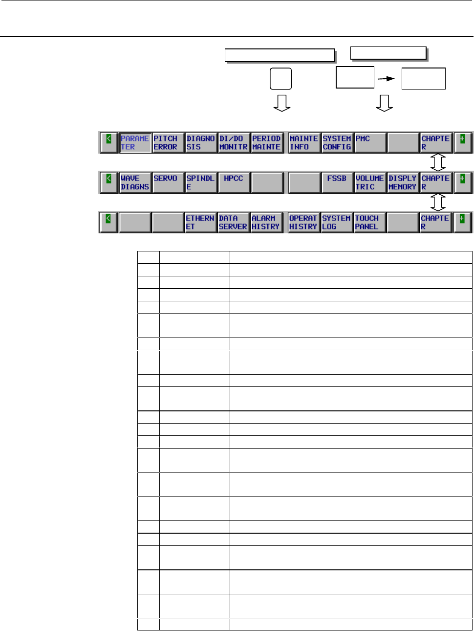(3) DIAGNOSIS Selects the screen for displaying the CNC status information.