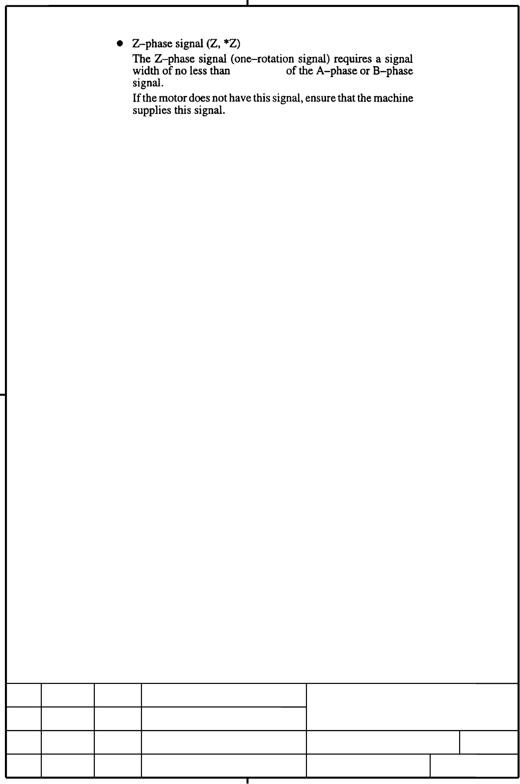 • Page 12quarter period Input voltage requirments The voltage of A and B phase signals must meet the following requirments High level : 2.4V or more Low level : 0.8V or less TITLE DRAW. NO. CUST. A-65551EN/01 SHEET 11 EDIT. DATE DESIG. DESCRIPTION FANUC LTD / 30