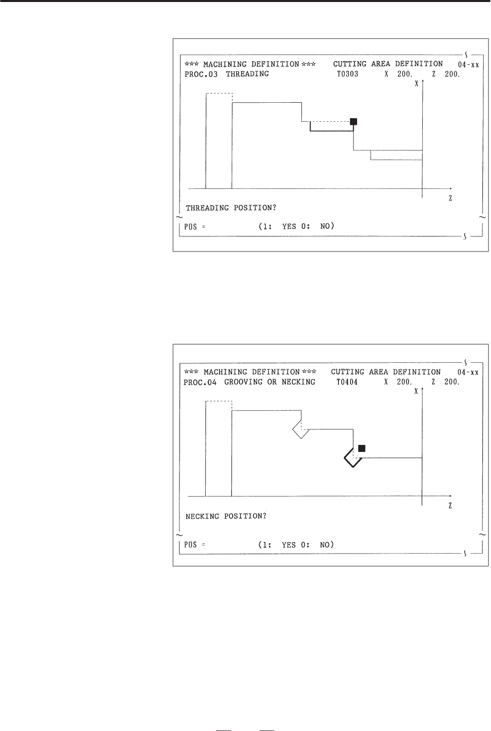 • Page 768B. RESTRICTIONS ON EACH SYSTEM APPENDIX B–61804E–2/05 Answer this question by one of the following operations. . . . . In case of “YES”. 1 INPUT (Another position is cut by the same tool) . . . . In case of “NO”. 0 INPUT (Not cut by the same tool) After answering all questions, the CRT screen return
