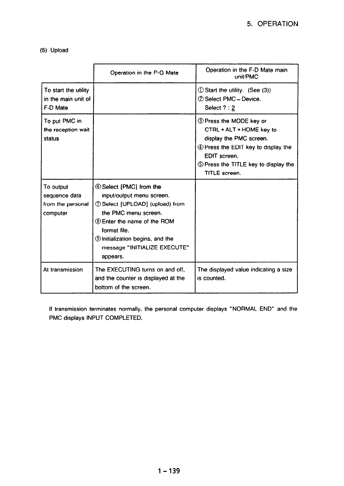 If transmission terminates normally, the personal computer displays “NORMAL END” and the