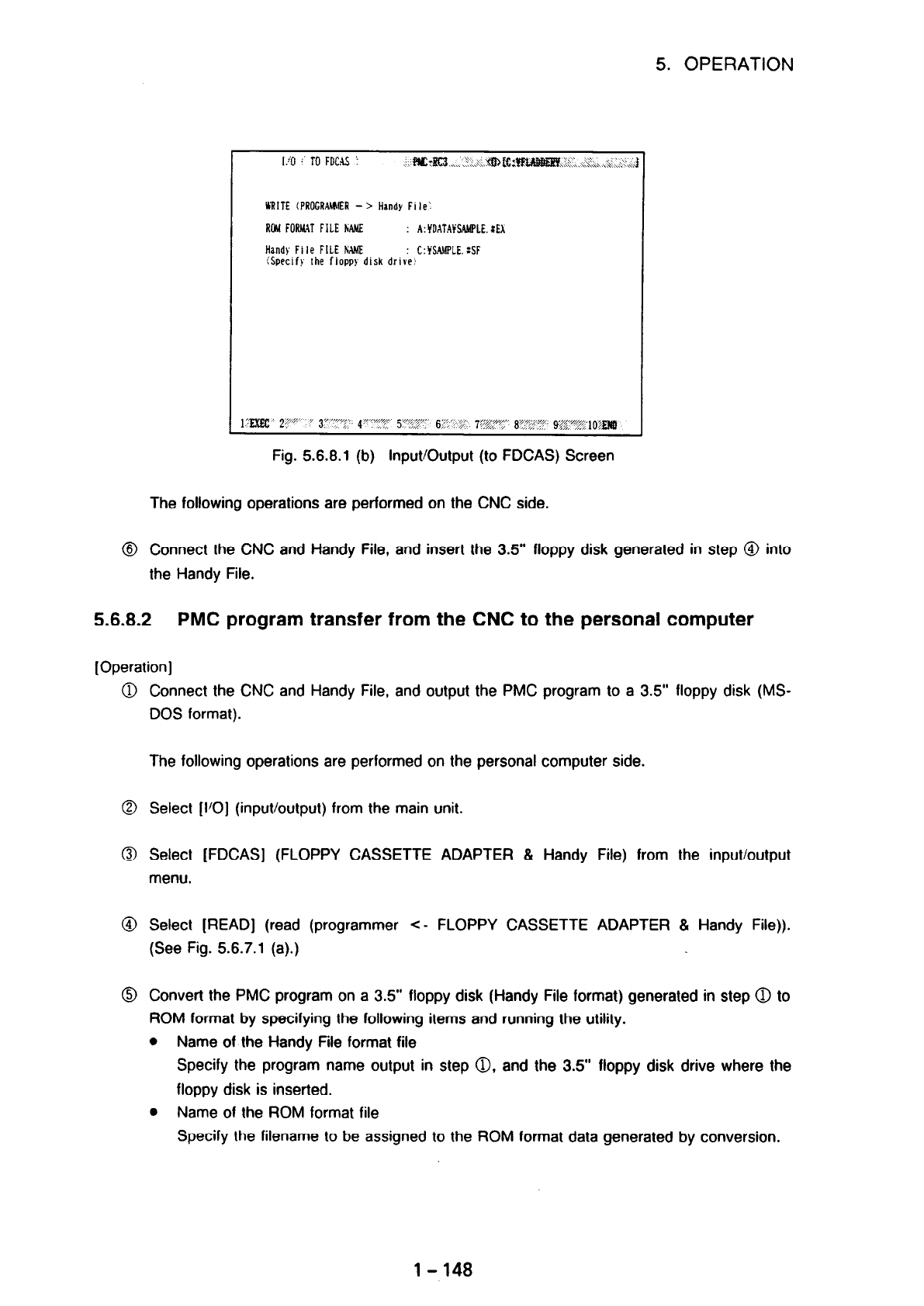 Connect the CNC and Handy File, and output the PMC program to a 3.5” floppy disk (MS-