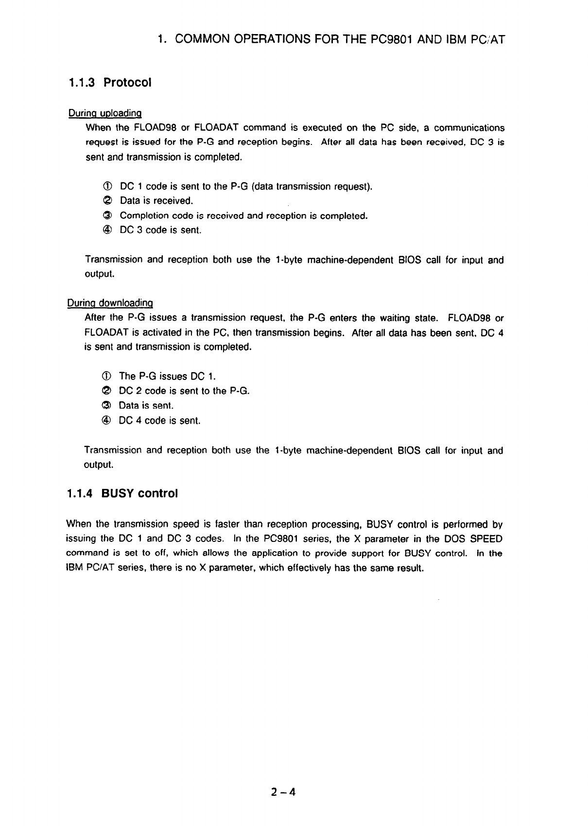 FLOADAT is activated in the PC, then transmission begins. After all data has been sent. DC 4