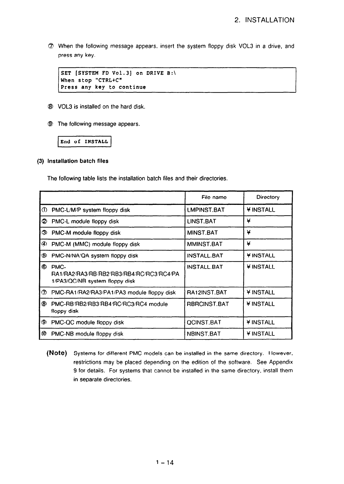 (Note) Systems for different PMC models can be installed in the same directory. However,