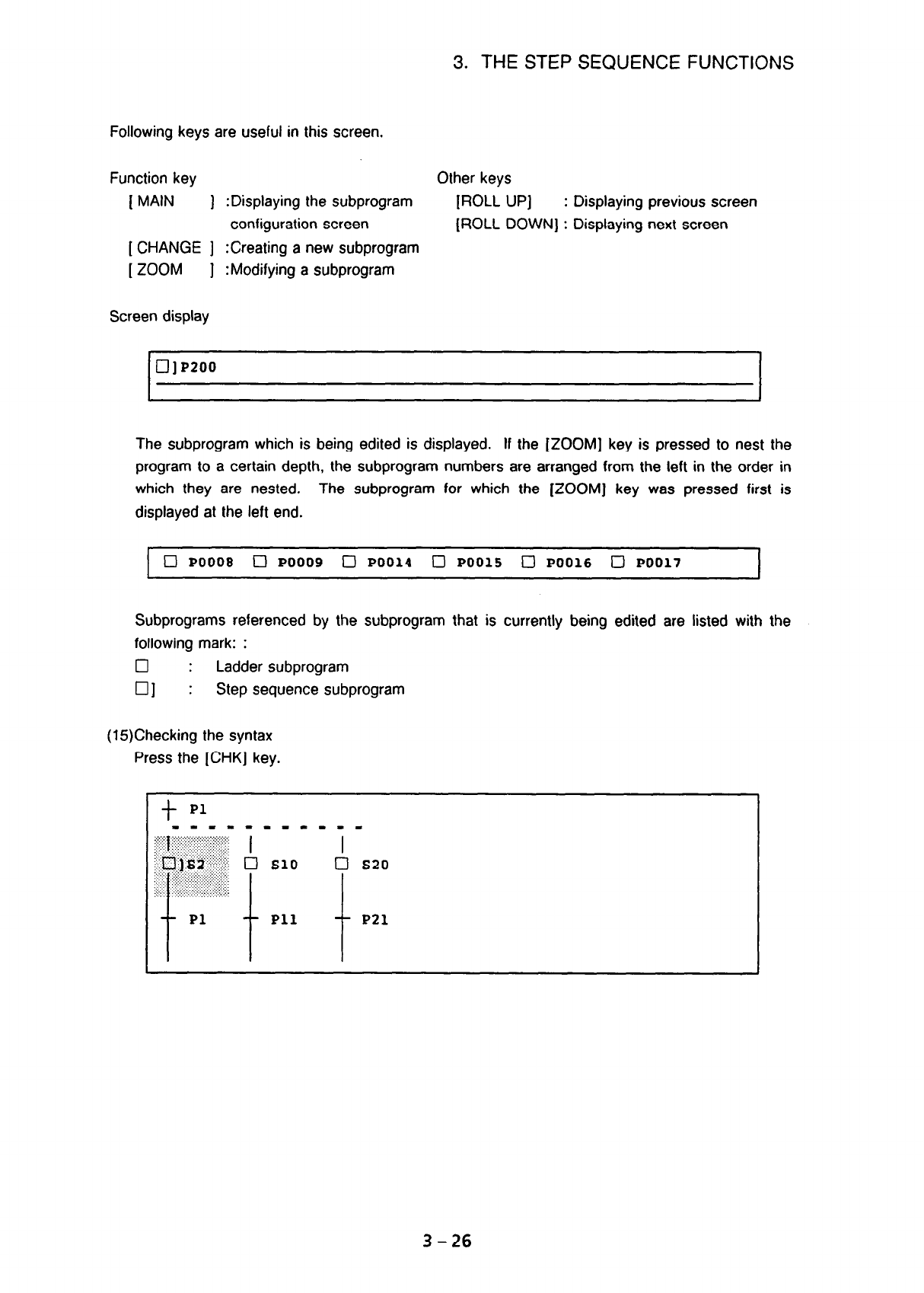 The subprogram which is being edited is displayed. If the [ZOOM] key is pressed to nest the