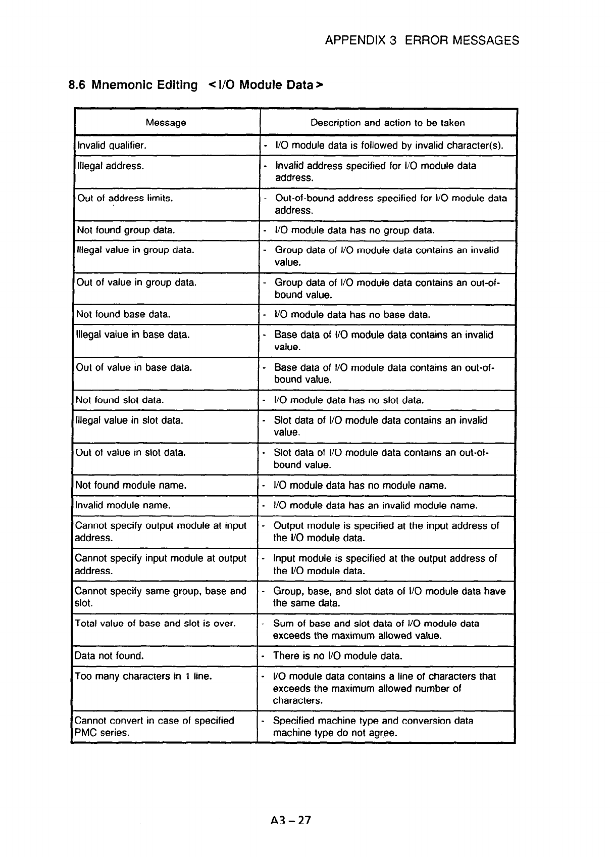 - Invalid address specified for l/O module data