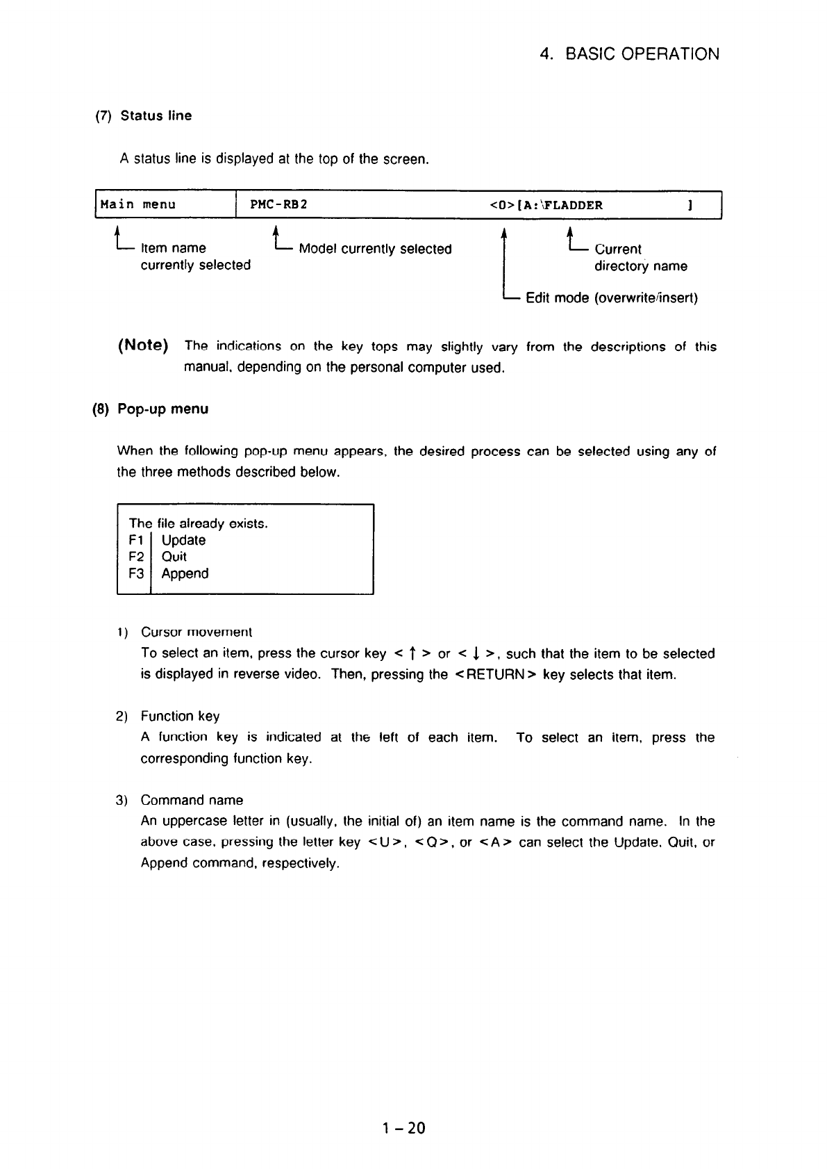 is displayed in reverse video. Then, pressing the <RETURN> key selects that item.
