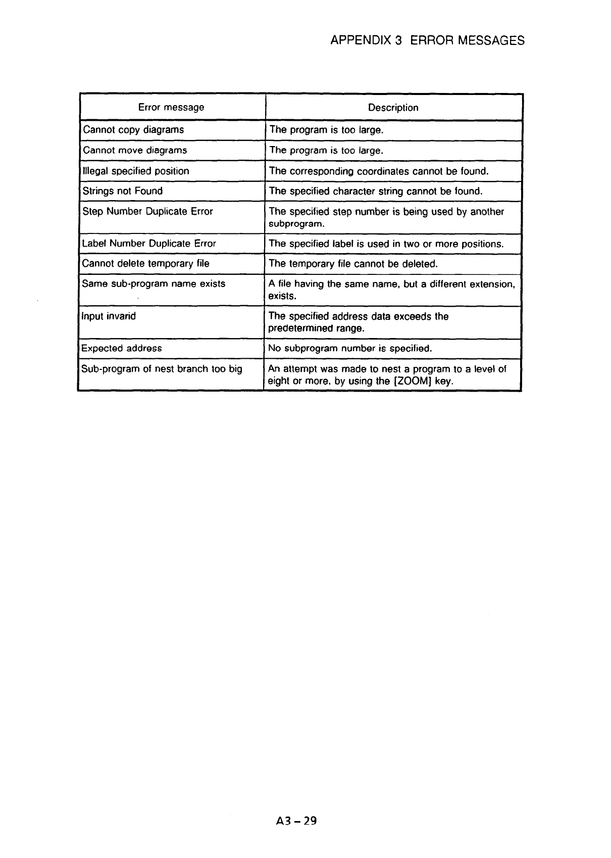 APPENDIX 3 ERROR MESSAGES