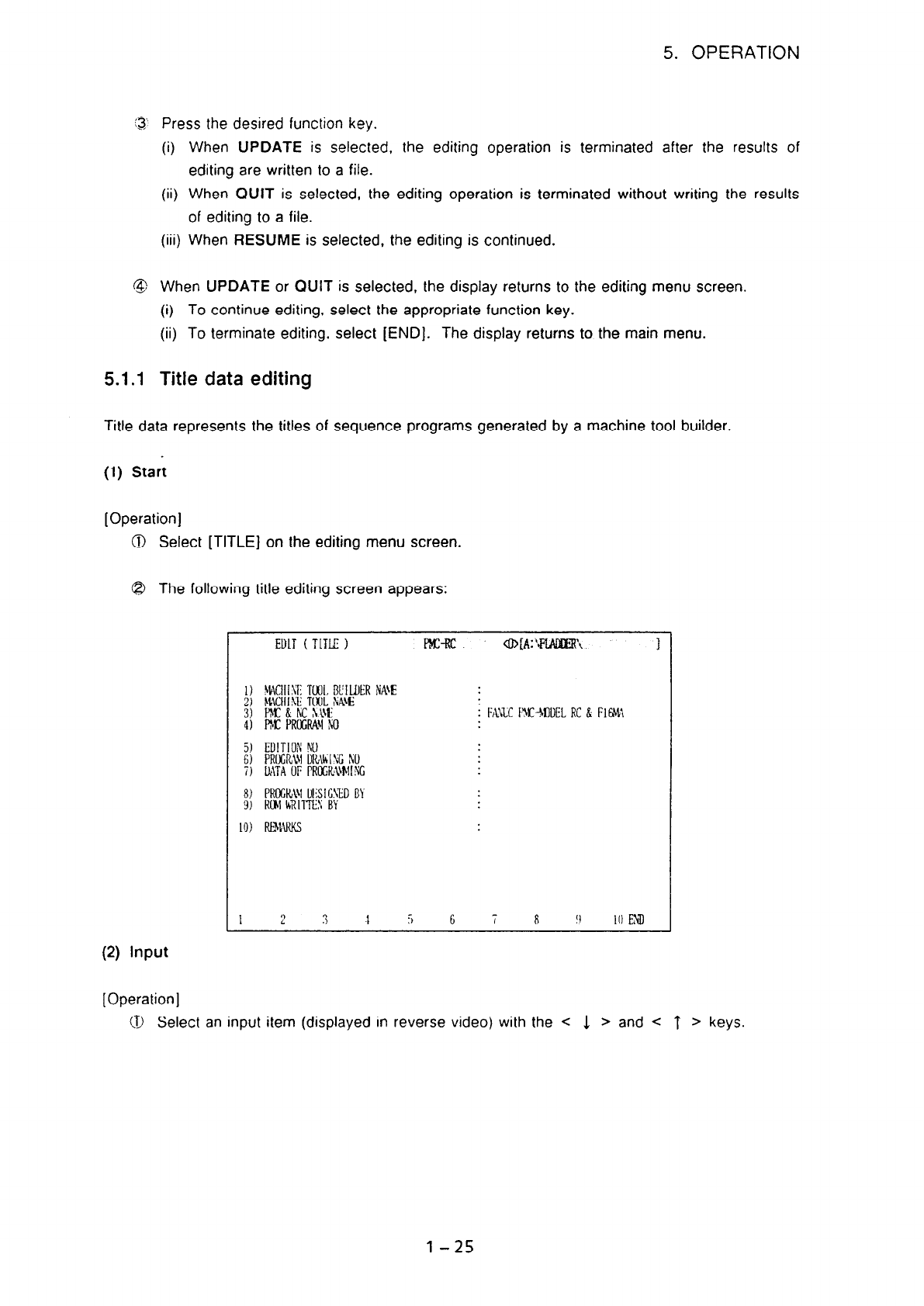 (ii) To terminate editing, select [END]. The display returns to the main menu.