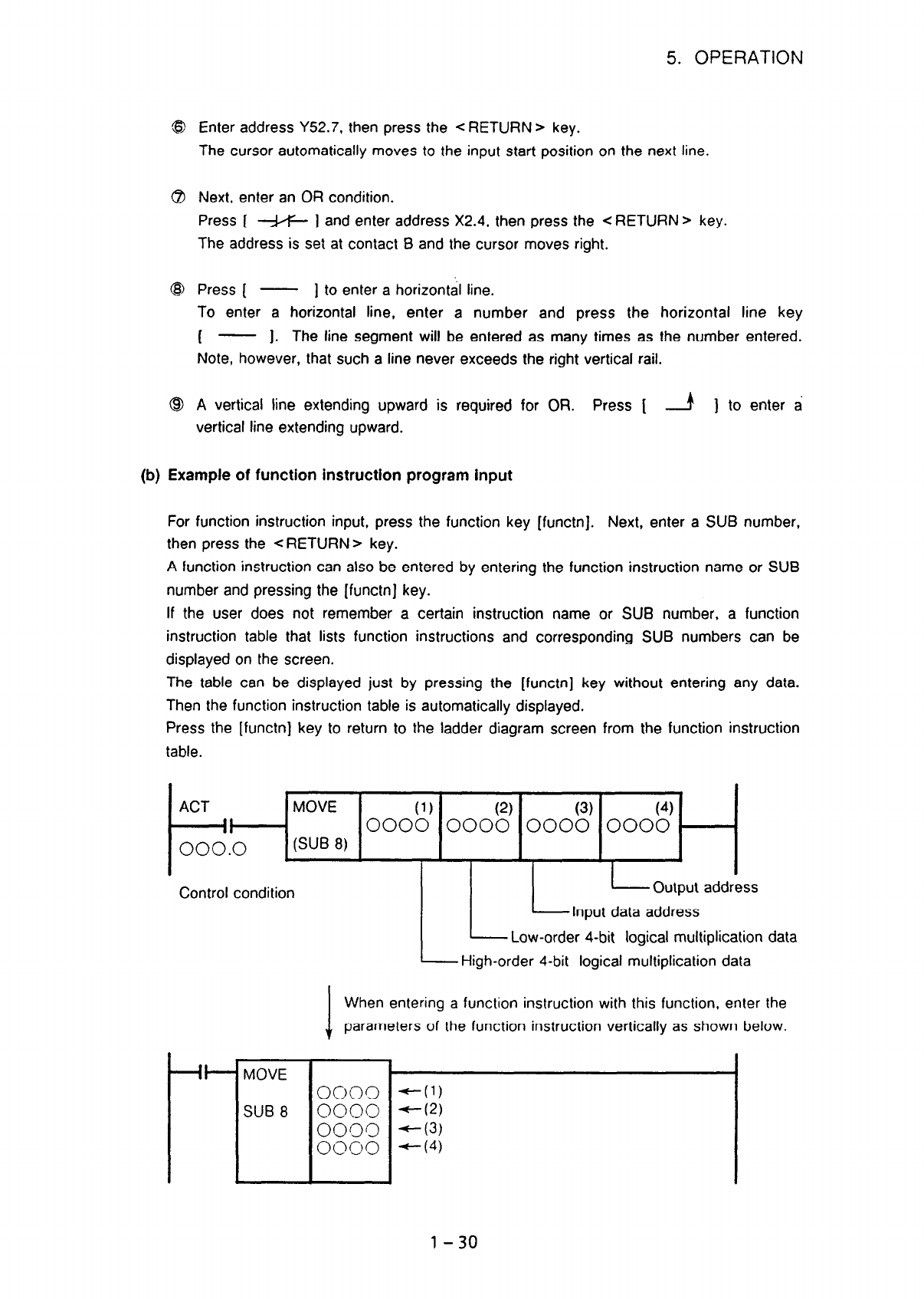 For function instruction input, press the function key [functnj. Next, enter a SUB number,