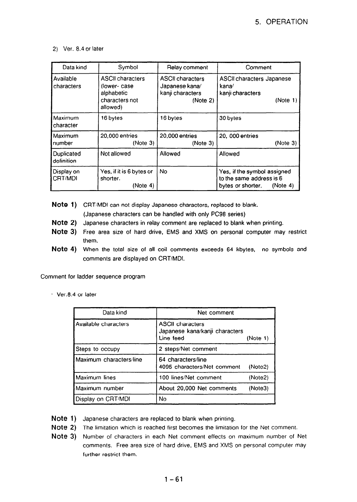 Note 2) Japanese characters in relay comment are replaced to blank when printing.